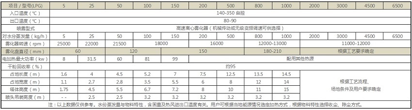 有LPG系列高速离心喷雾干燥机的详细技术参数吗?
