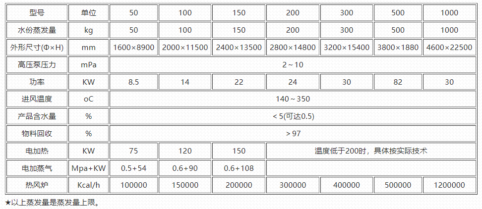 ④适用于低黏度的物料,高黏度物料不易雾化;